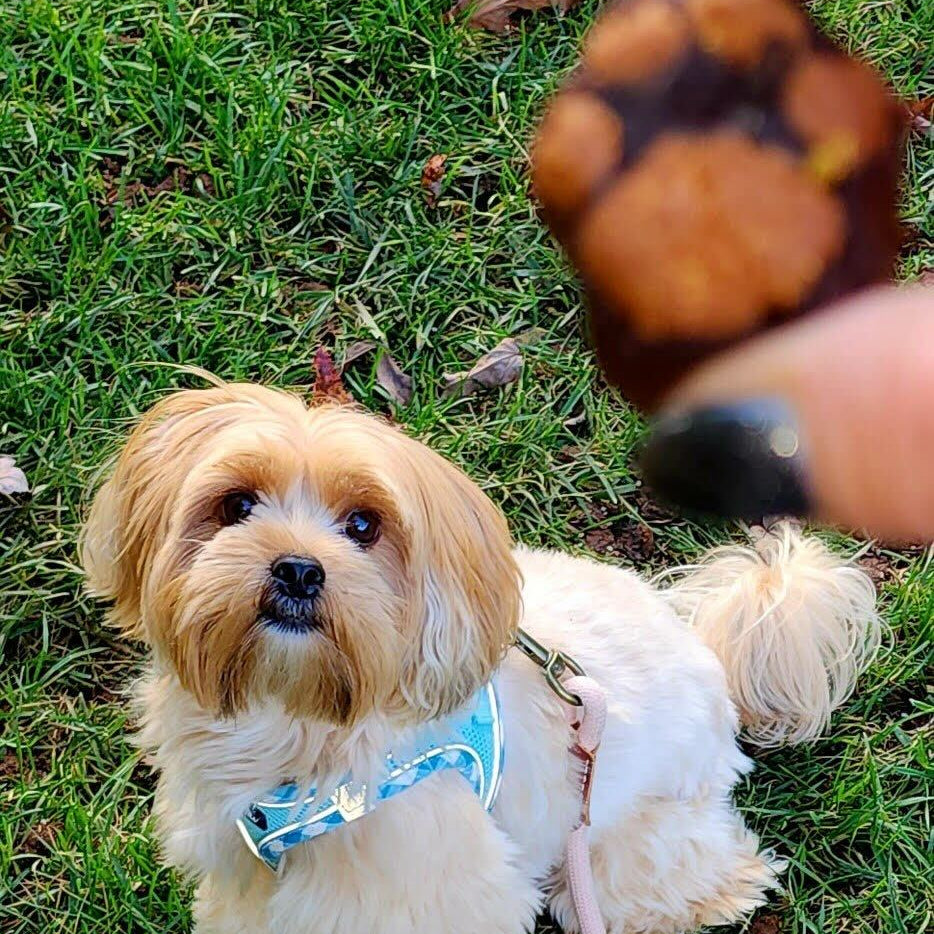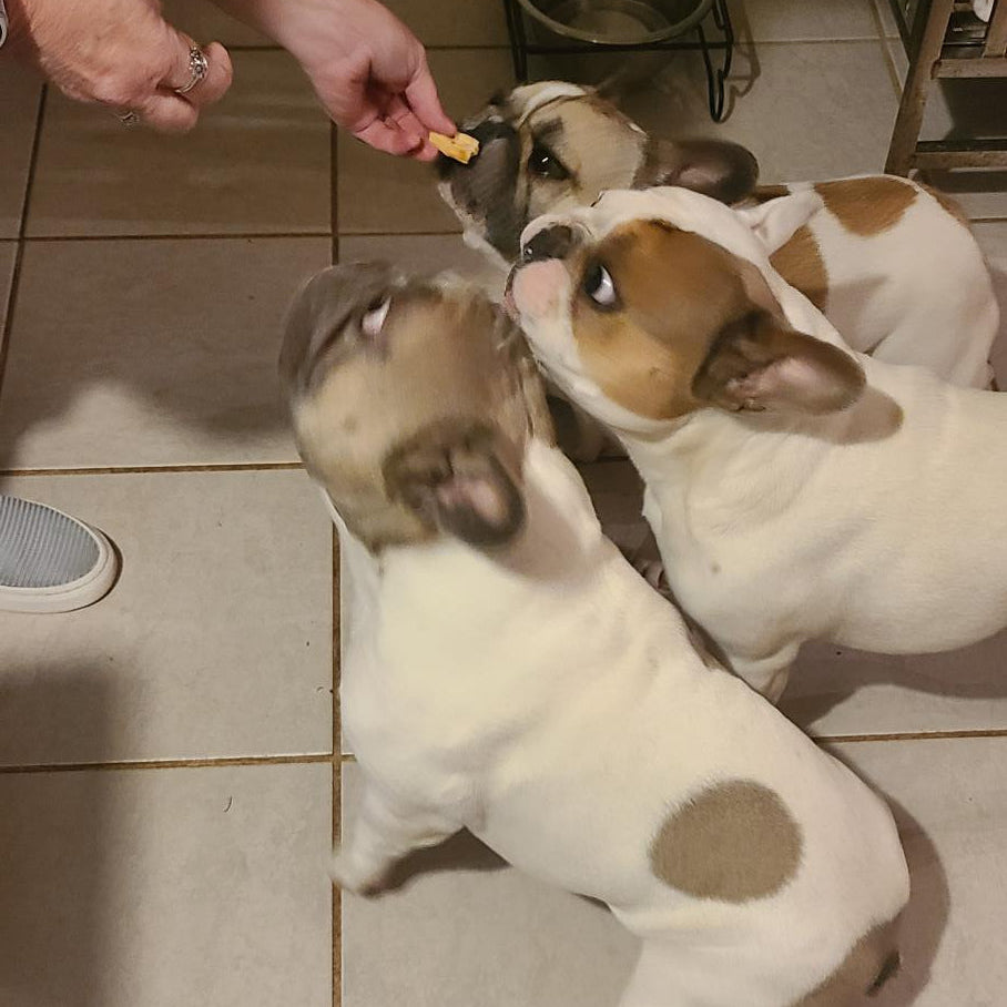 "We tried the chicken and apple crunchers. Our three Frenchies loved them! Looking forward to visiting your store."